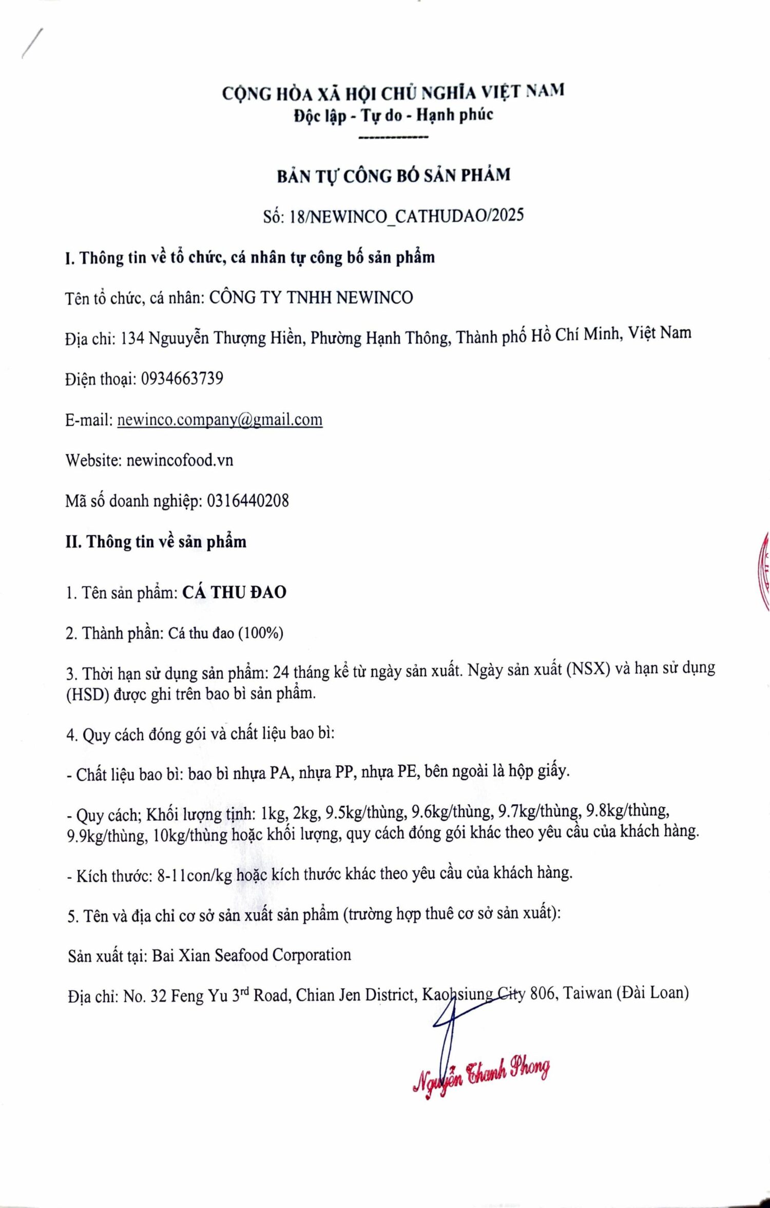 HỒ SƠ TỰ CÔNG CÁ THU ĐAO