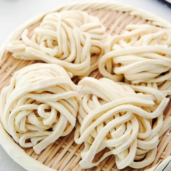 - Mì udon tươi tách sợi, nếu là udon đông lạnh có thể trụng nhanh 20–30 giây rồi để ráo