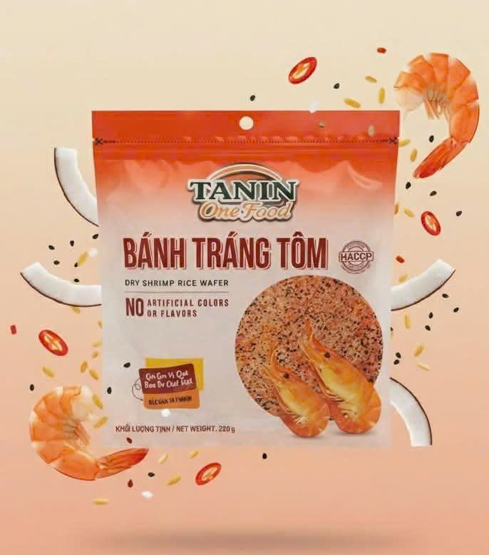 Kết cấu: Bánh mỏng, giòn tan khi nướng, lớp tôm phủ đều, không quá dày, không bị cứng hay khô.